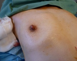 【乳腺・大胸筋の萎縮、肋骨の変形による乳房バストのクレーター状変形】